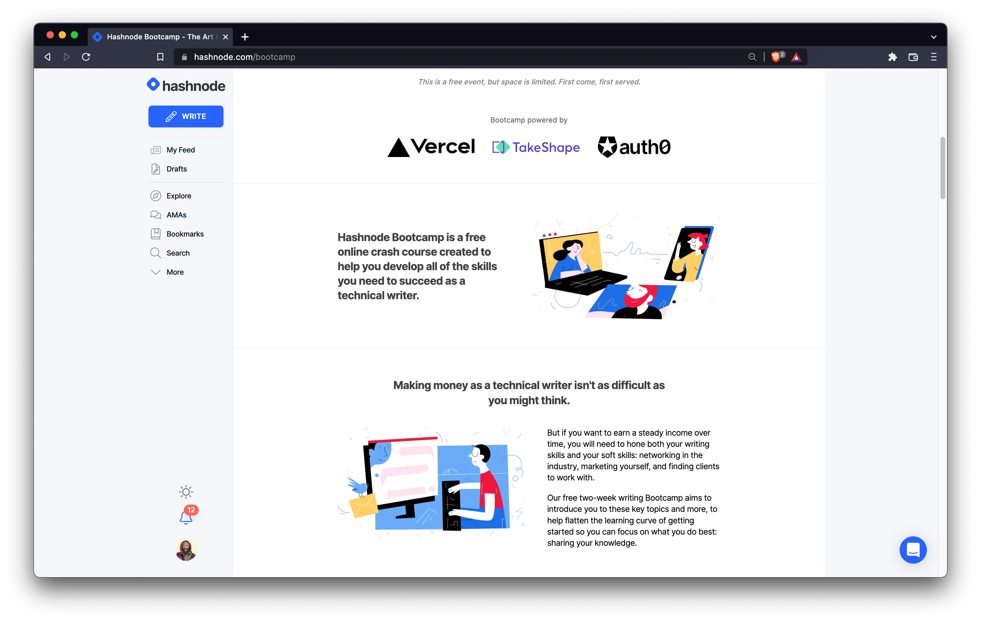 To that end, I organized and hosted a free two-week writing workshop series called The Art and Business of Technical Writing, featuring top content creators in the tech industry. I wrote all marketing materials for the event, including the landing page as well as the automated email marketing sequence that accompanied the series. I also landed three paid sponsorships for the bootcamp from well-respected companies in the industry.