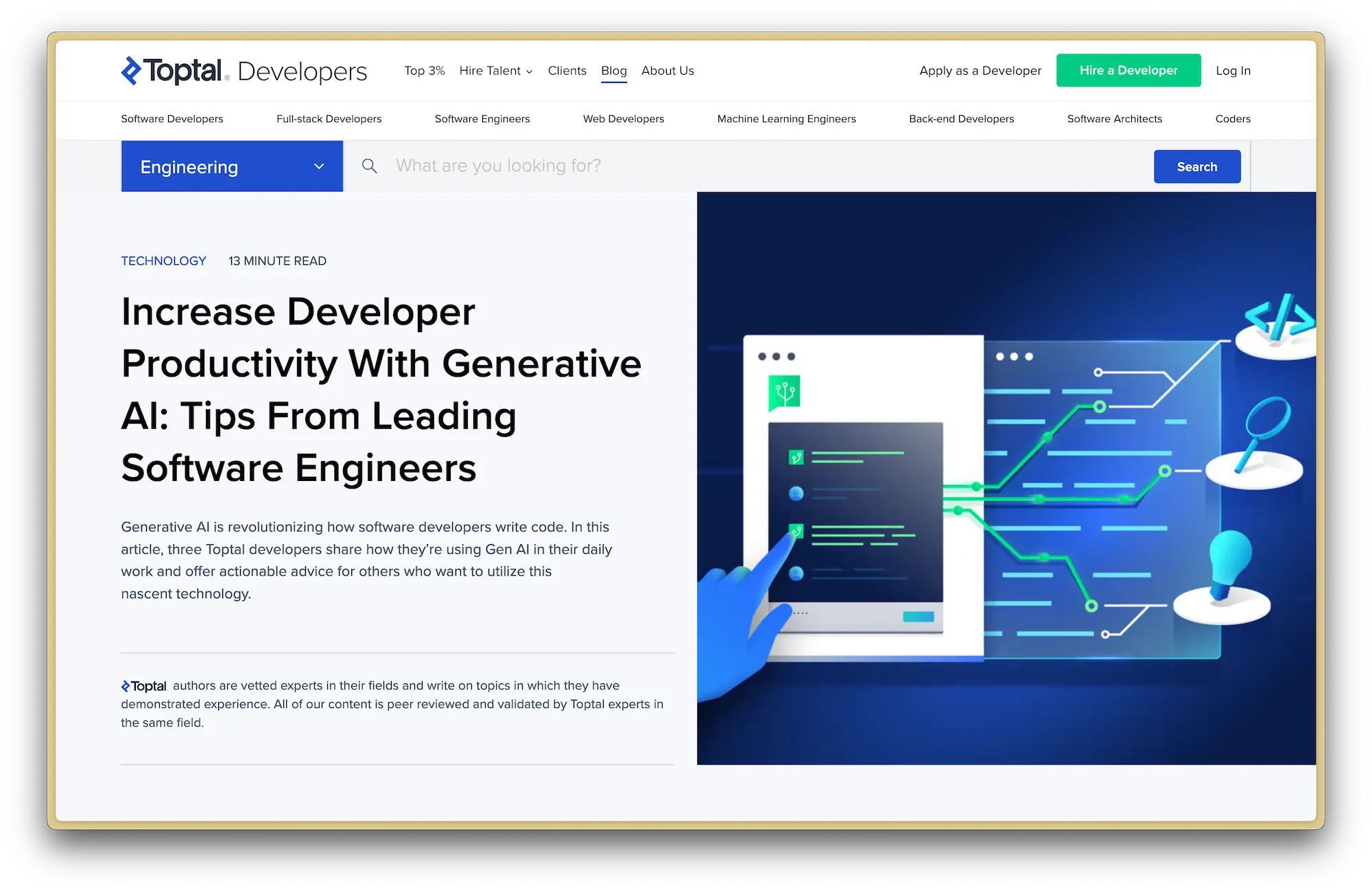 One of the most interesting articles I wrote was Increase Developer Productivity With Generative AI. For this piece, I interviewed three different software engineers from different niches to learn about how they use LLMs and generative AI in their daily work. I believe the final result is quite insightful and actionable, offering a realistic assessment of what these kinds of tasks these tools can be useful for when writing code.